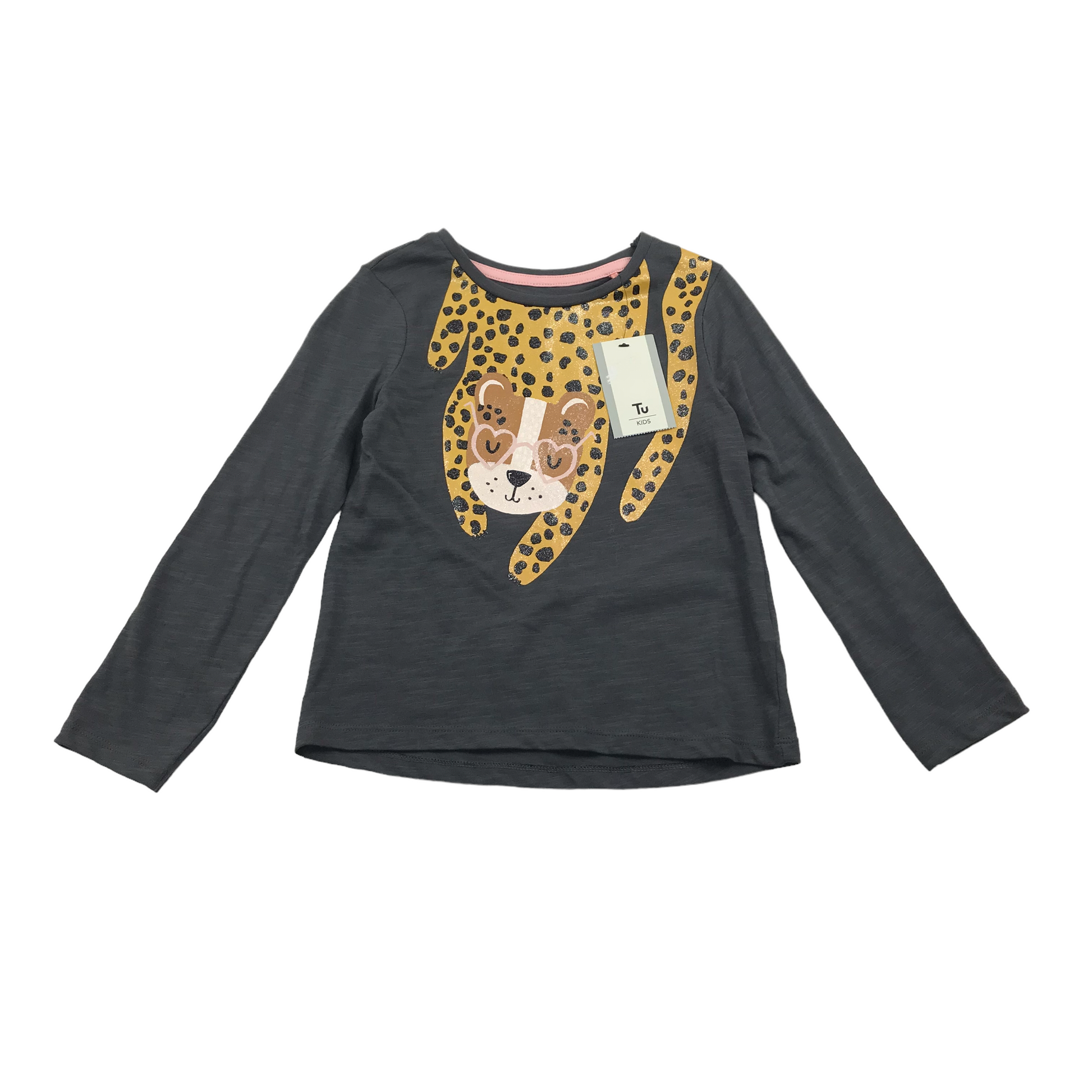 Preloved second hand Tu Dark Grey Leopard Long Sleeve T-shirt Age 4