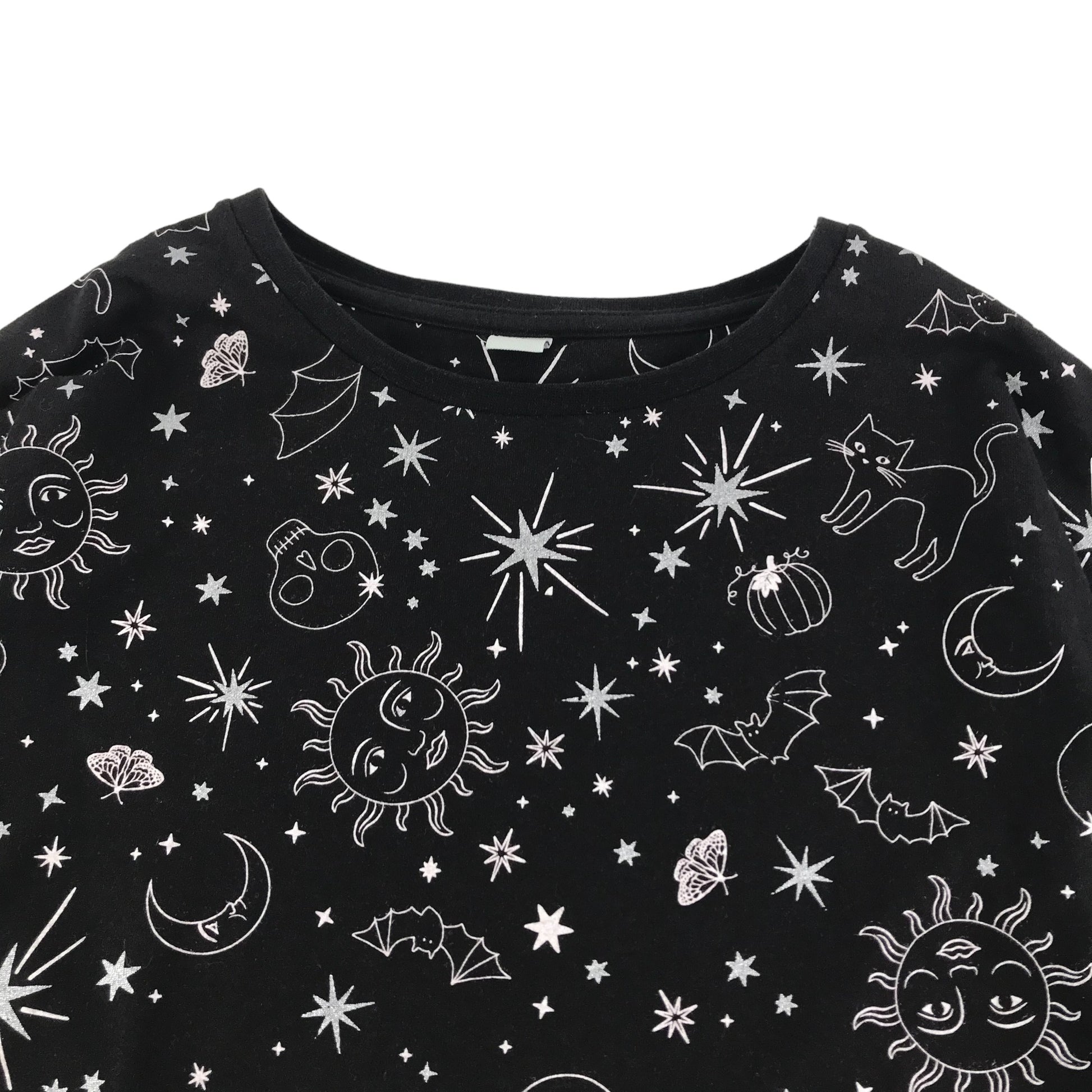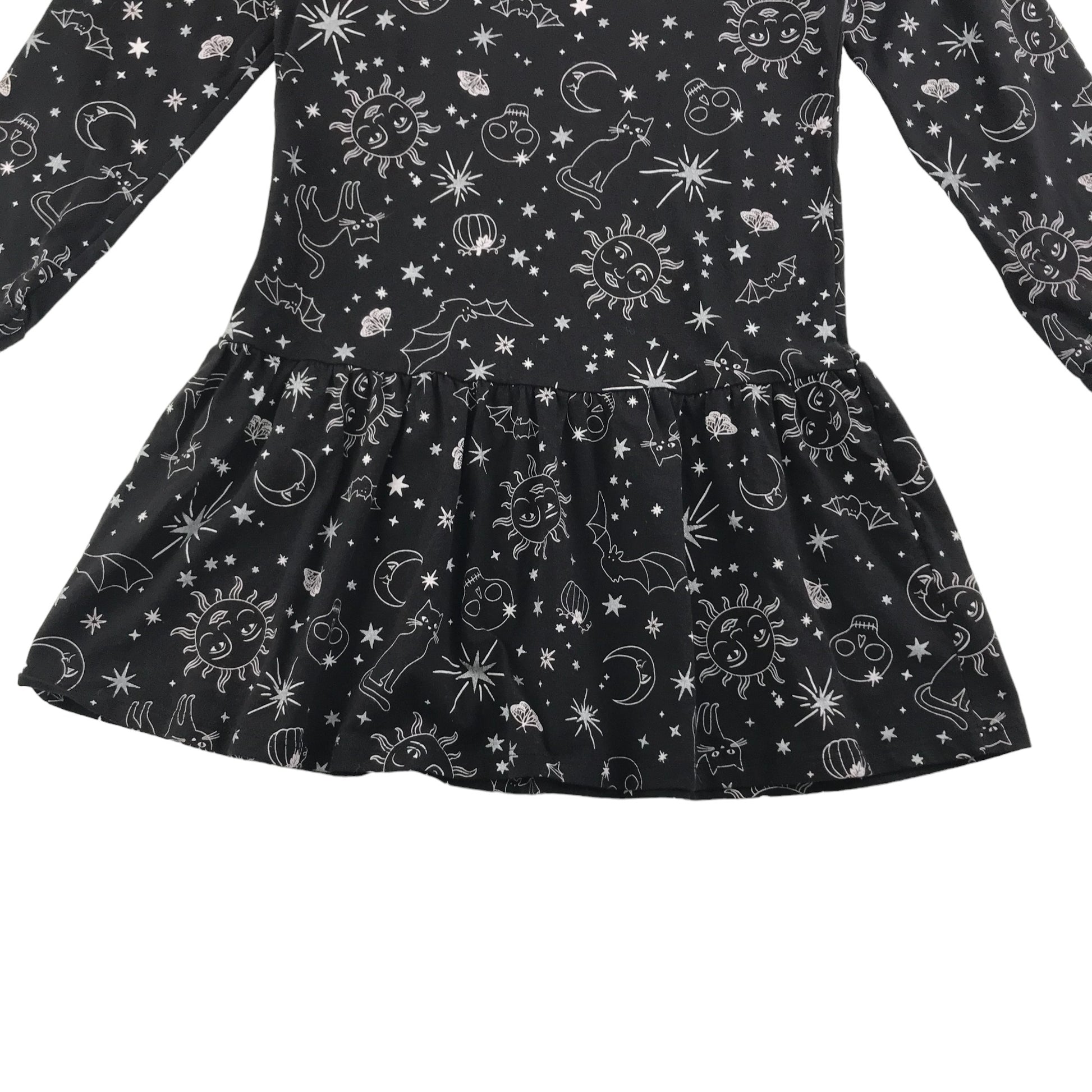 Preloved second-hand Tu Dress Age 10 Black Celestial Print Pattern T-shirt Dress