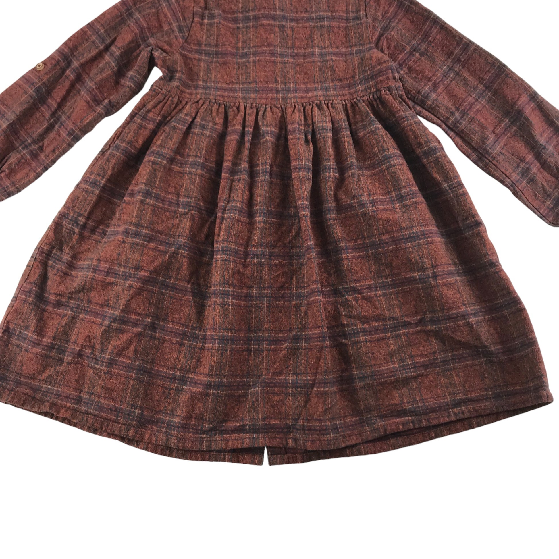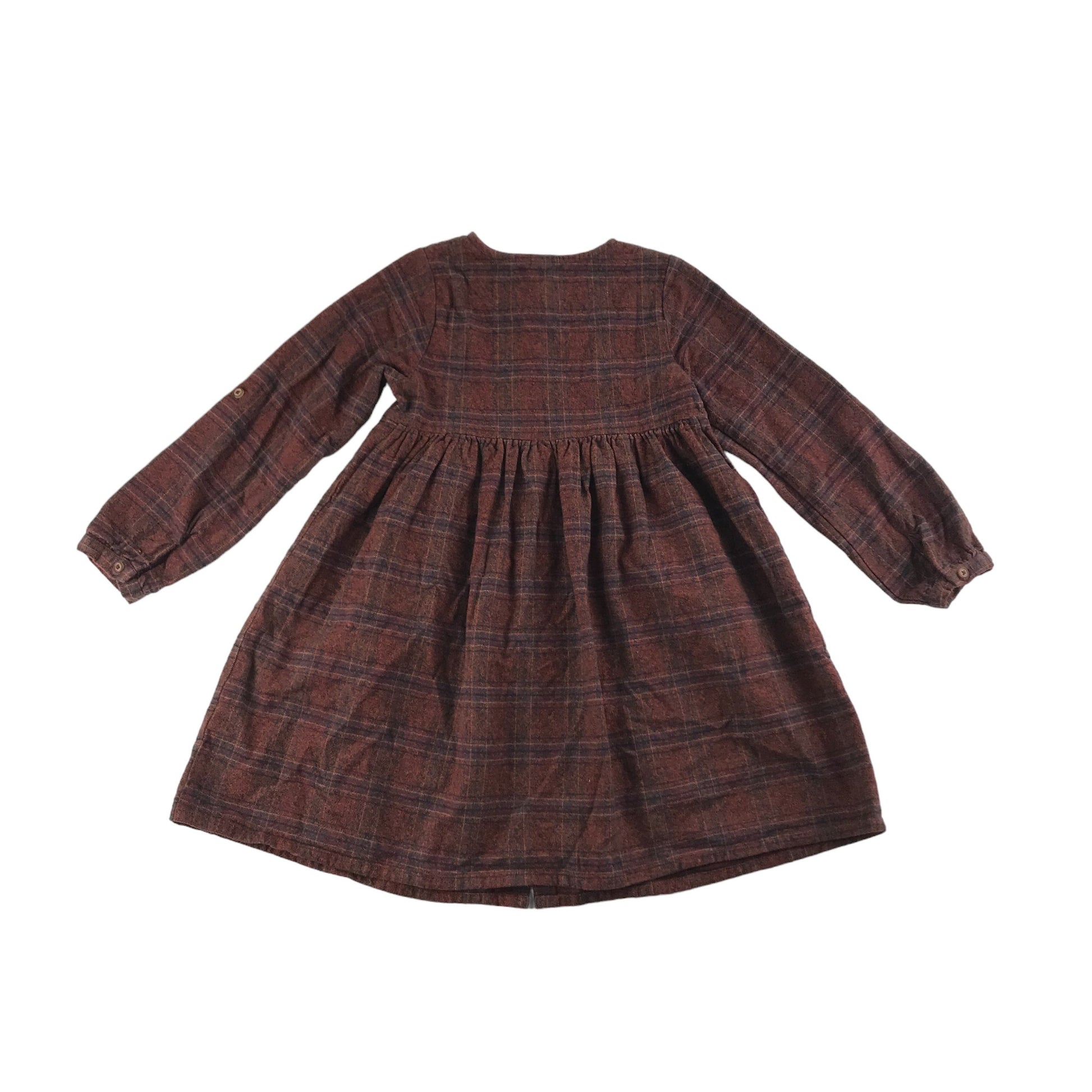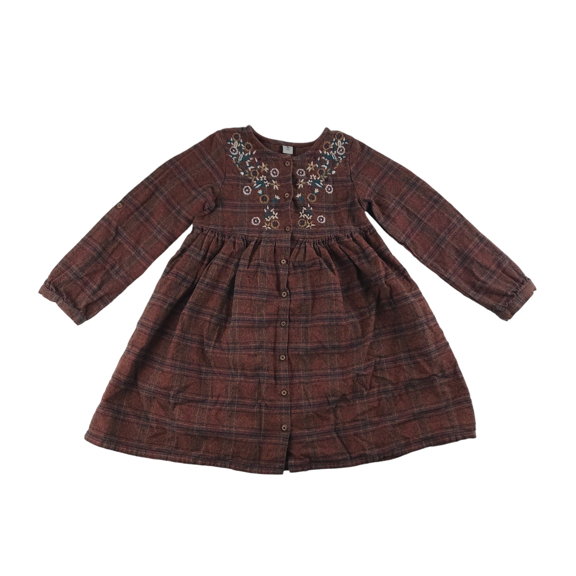 Tu Dress Age 7 Brown Check Pattern Embroidered Flowers Cotton