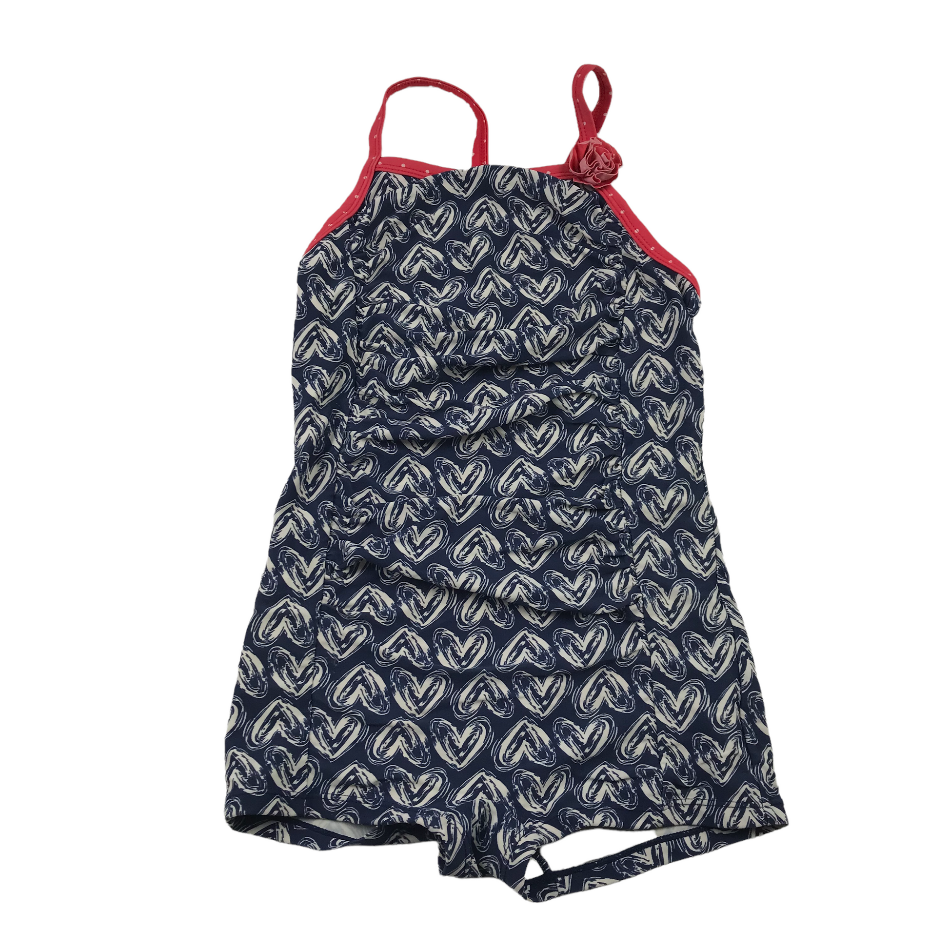 Preloved second hand Tu Navy Blue Love Heart Pattern Swimsuit Age 10