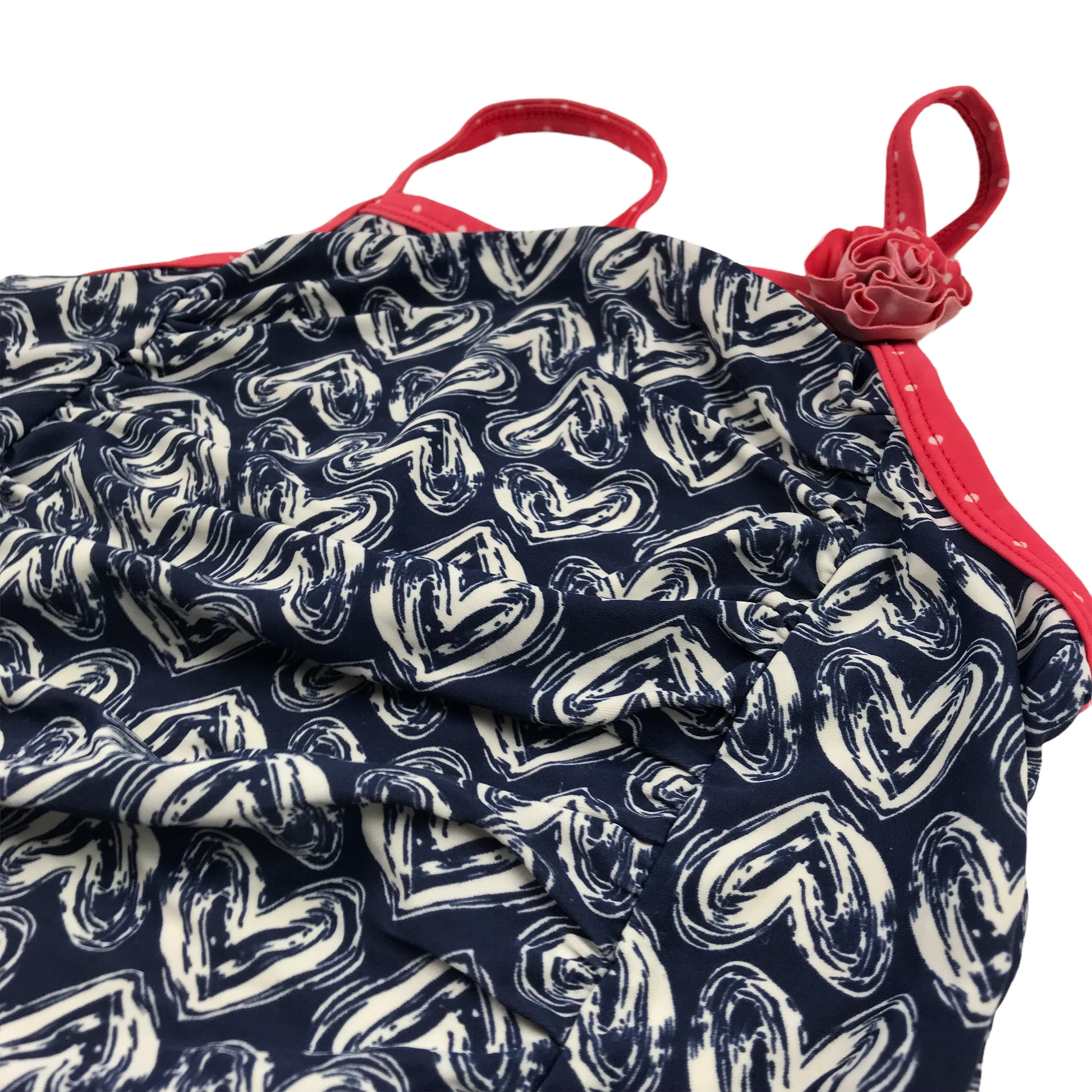 Tu Navy Blue Love Heart Pattern Swimsuit Age 10