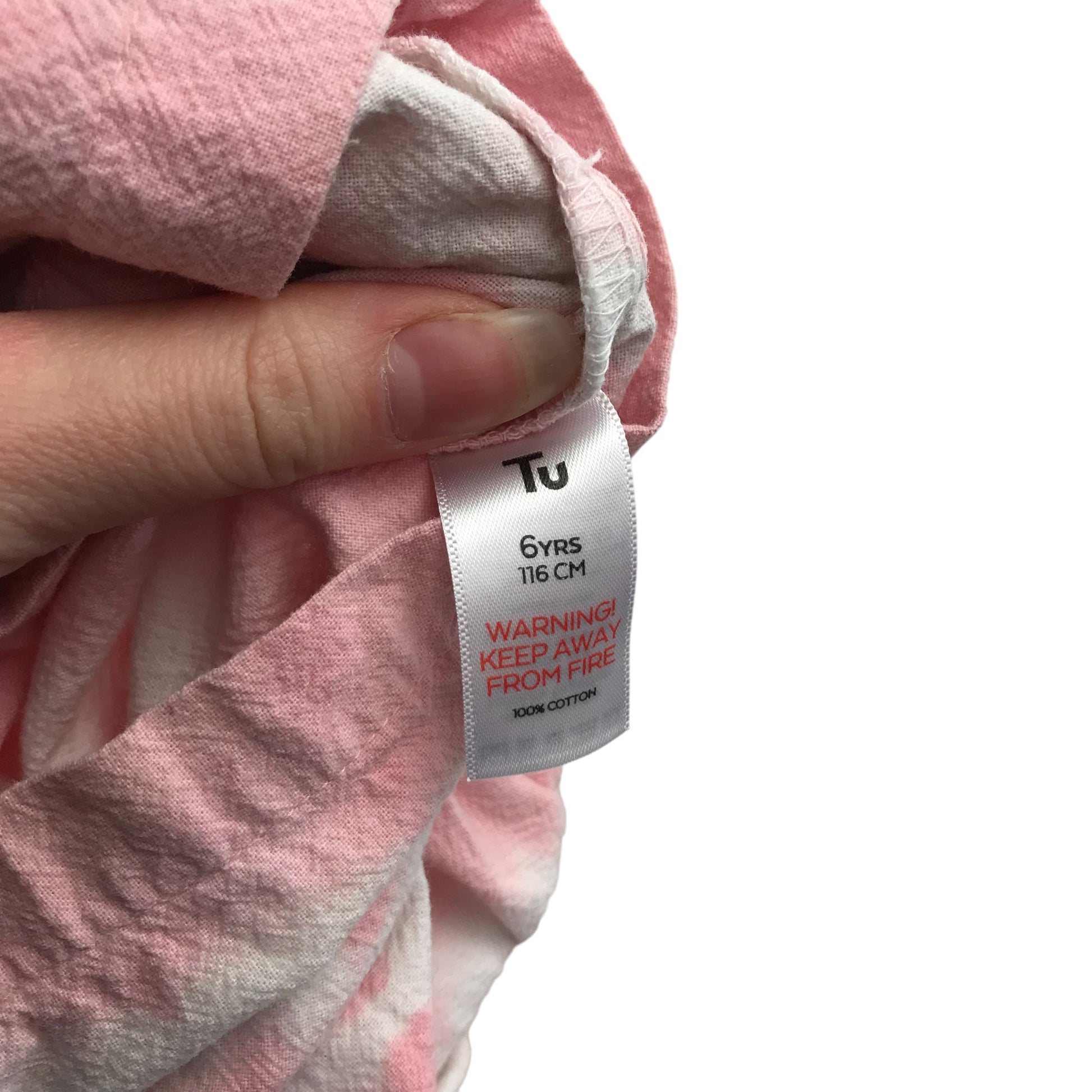Preloved second hand Tu Playsuit Age 6 Pink and White Tie Dye Pattern Jersey