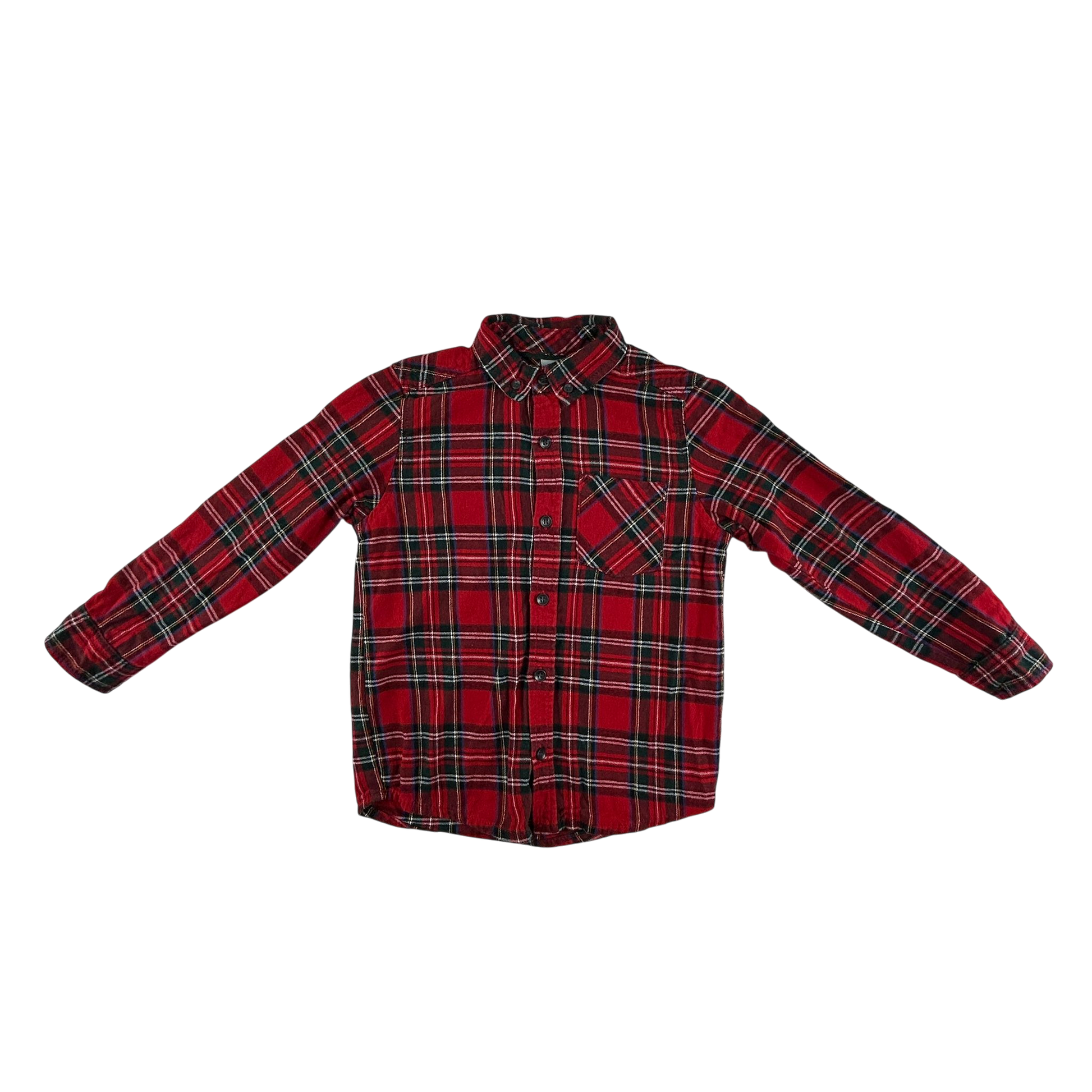 Preloved second hand Tu Shirt 7-8 Years Red Tartan Check Long Sleeve Cotton