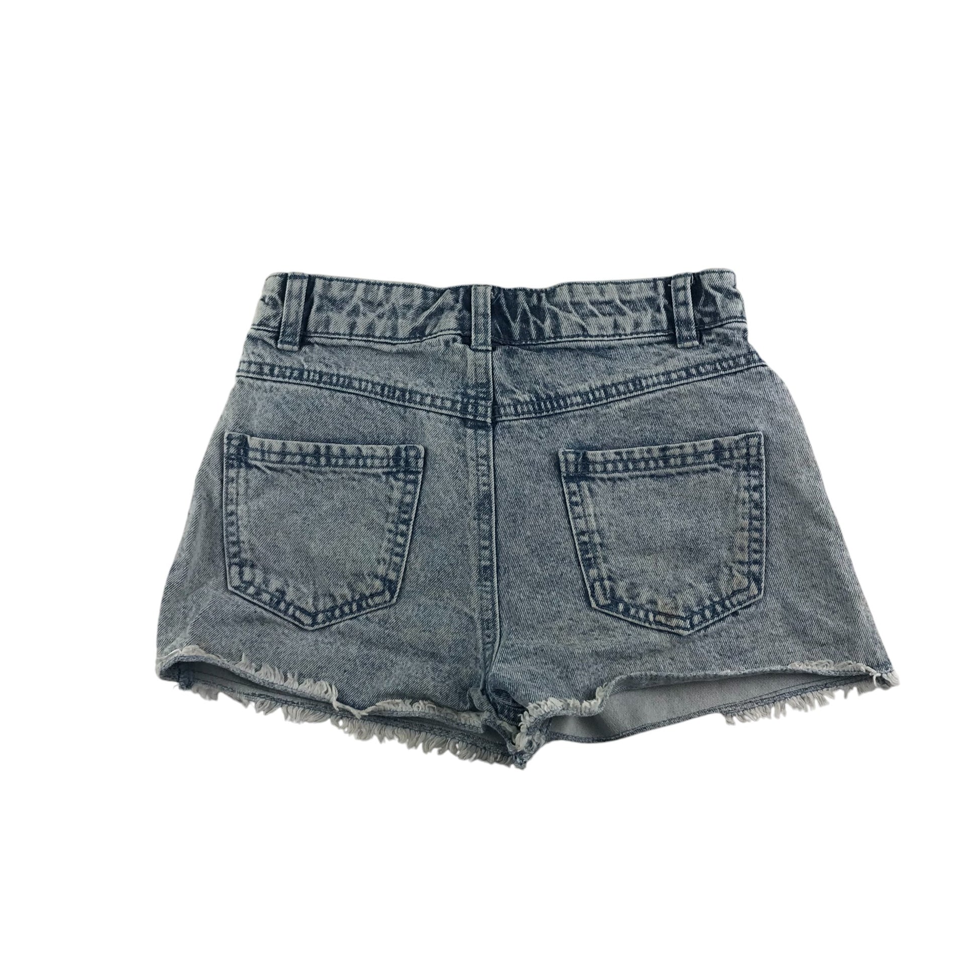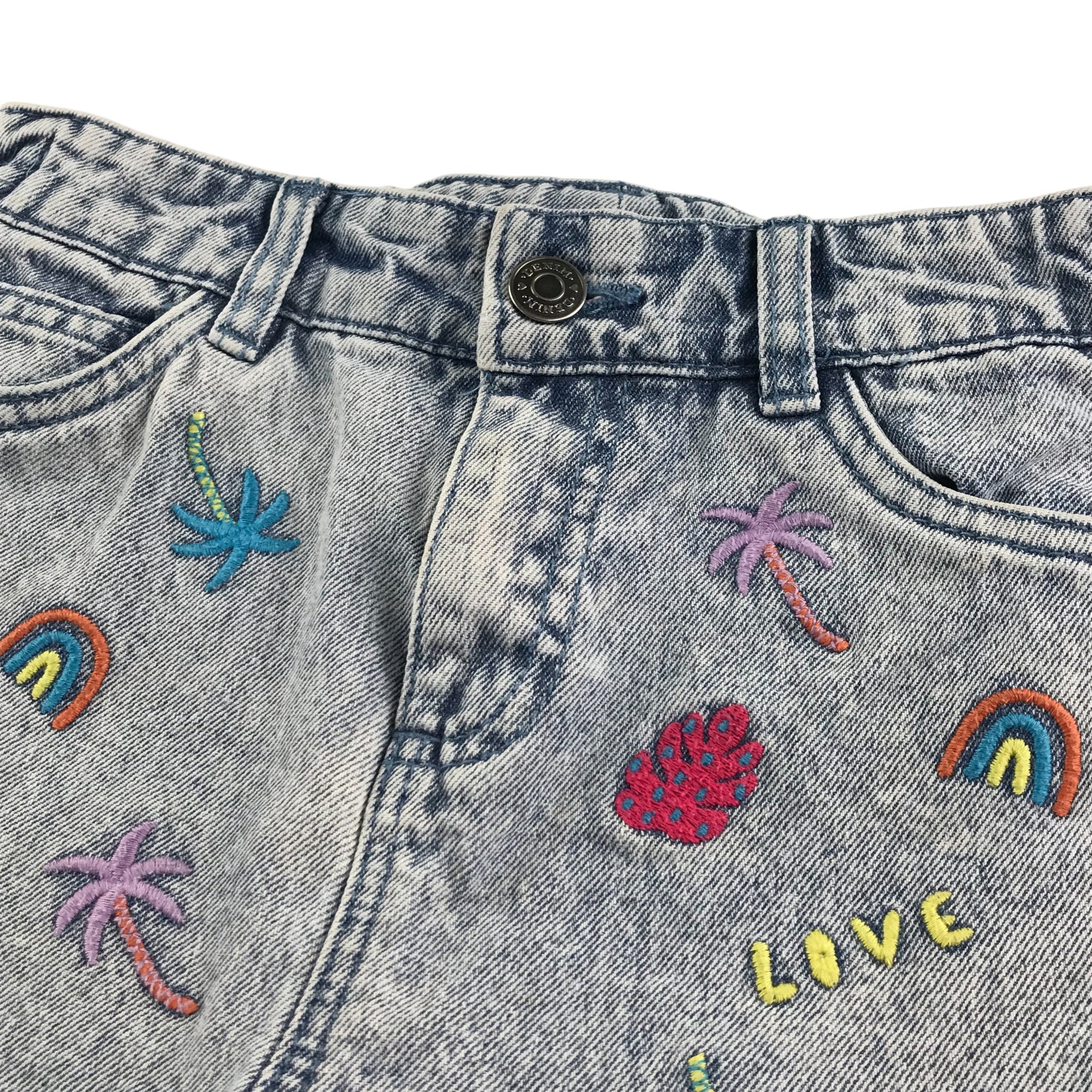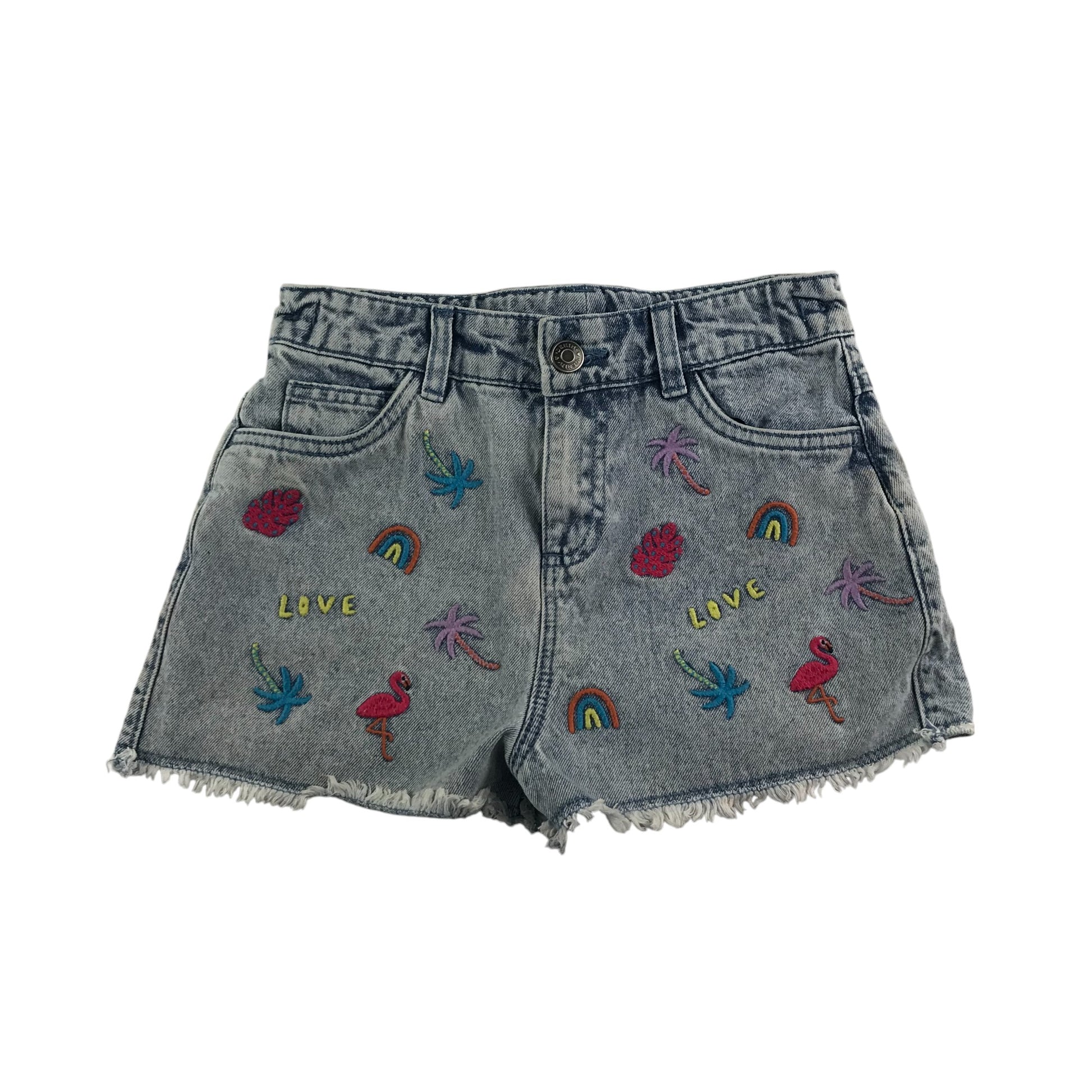 Preloved second-hand Tu shorts 6-7 years blue denim embroidery icons
