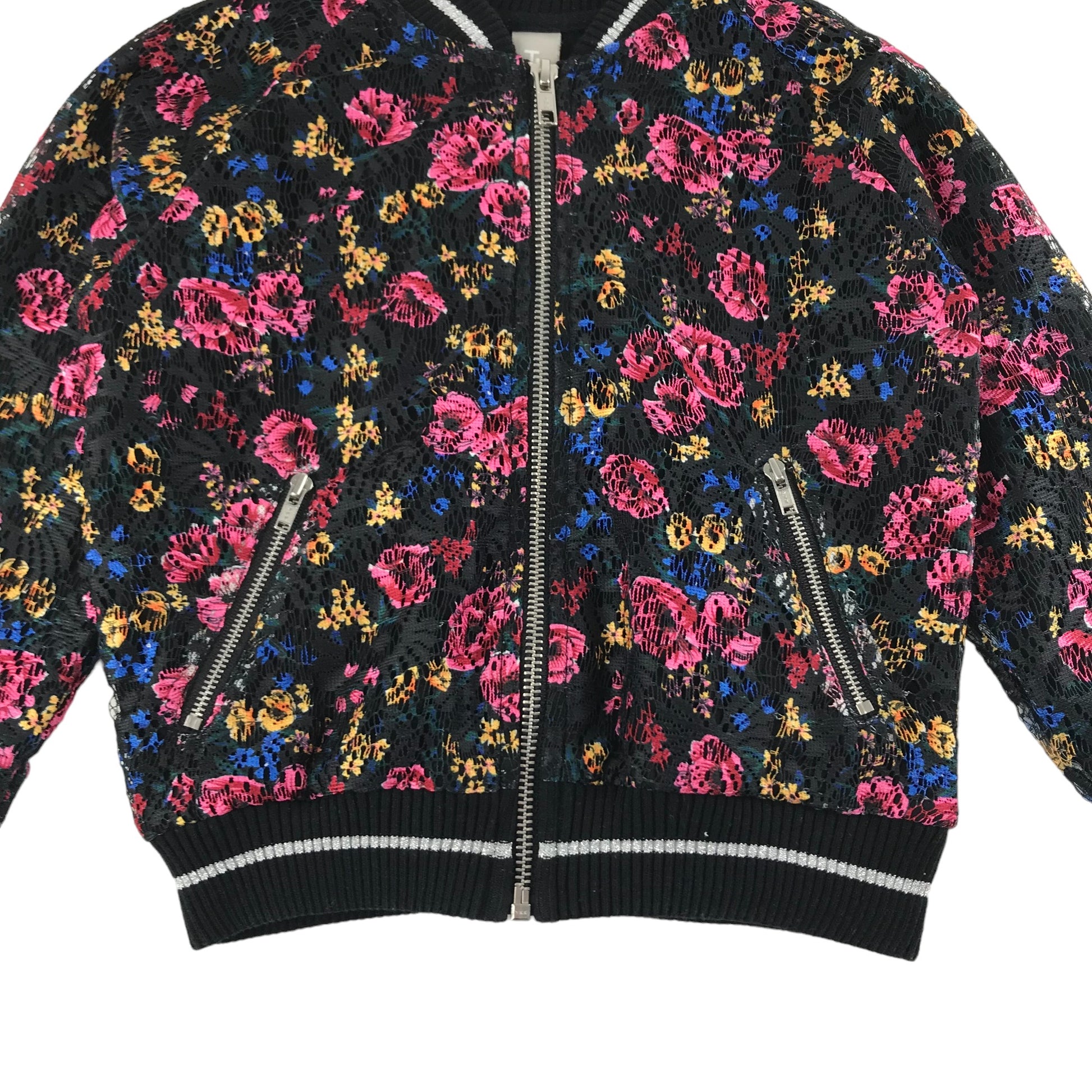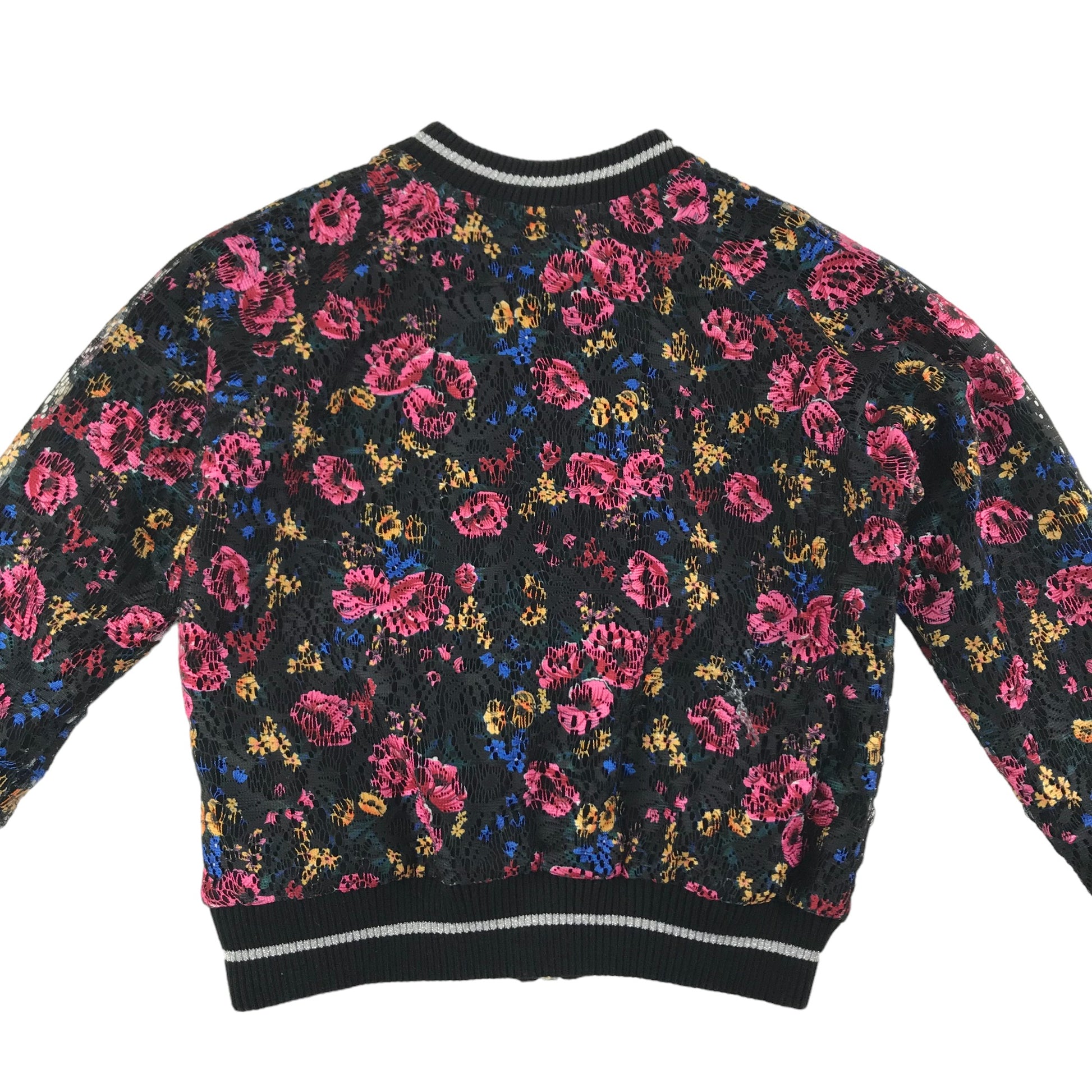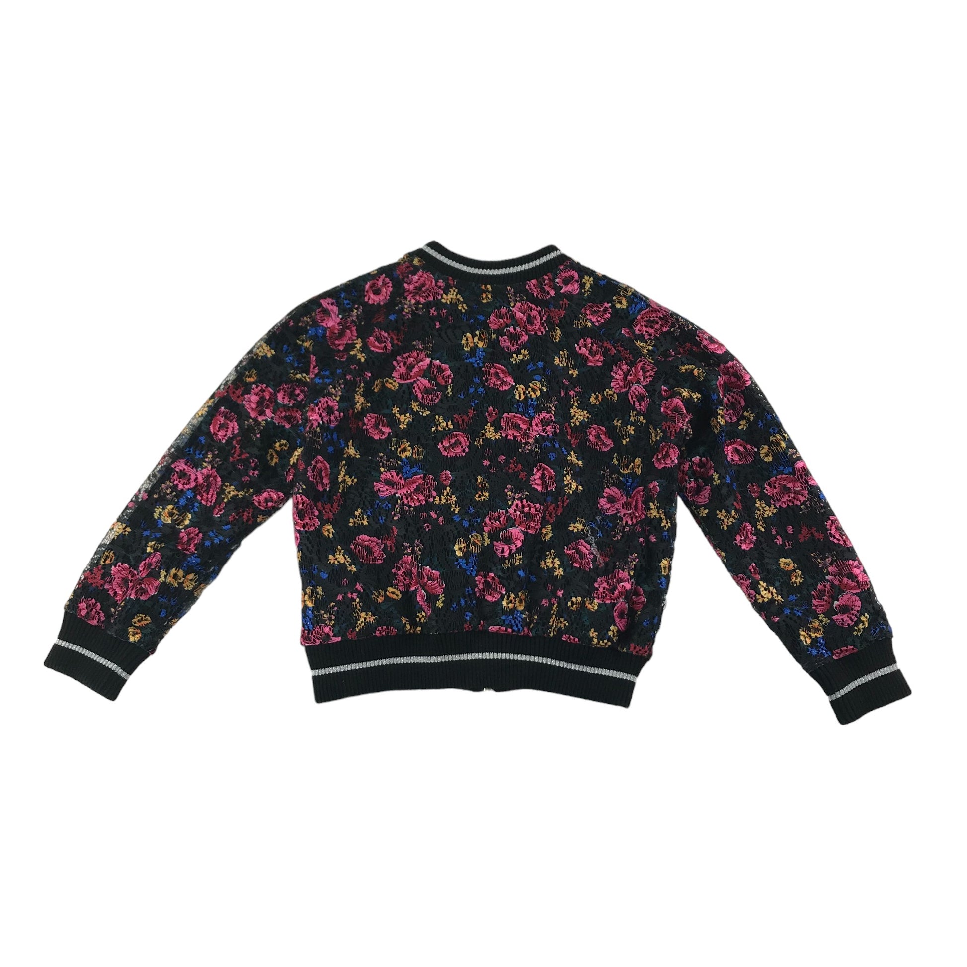 Tu Sweater Age 5 Black and Floral Lace Layered Zip Top
