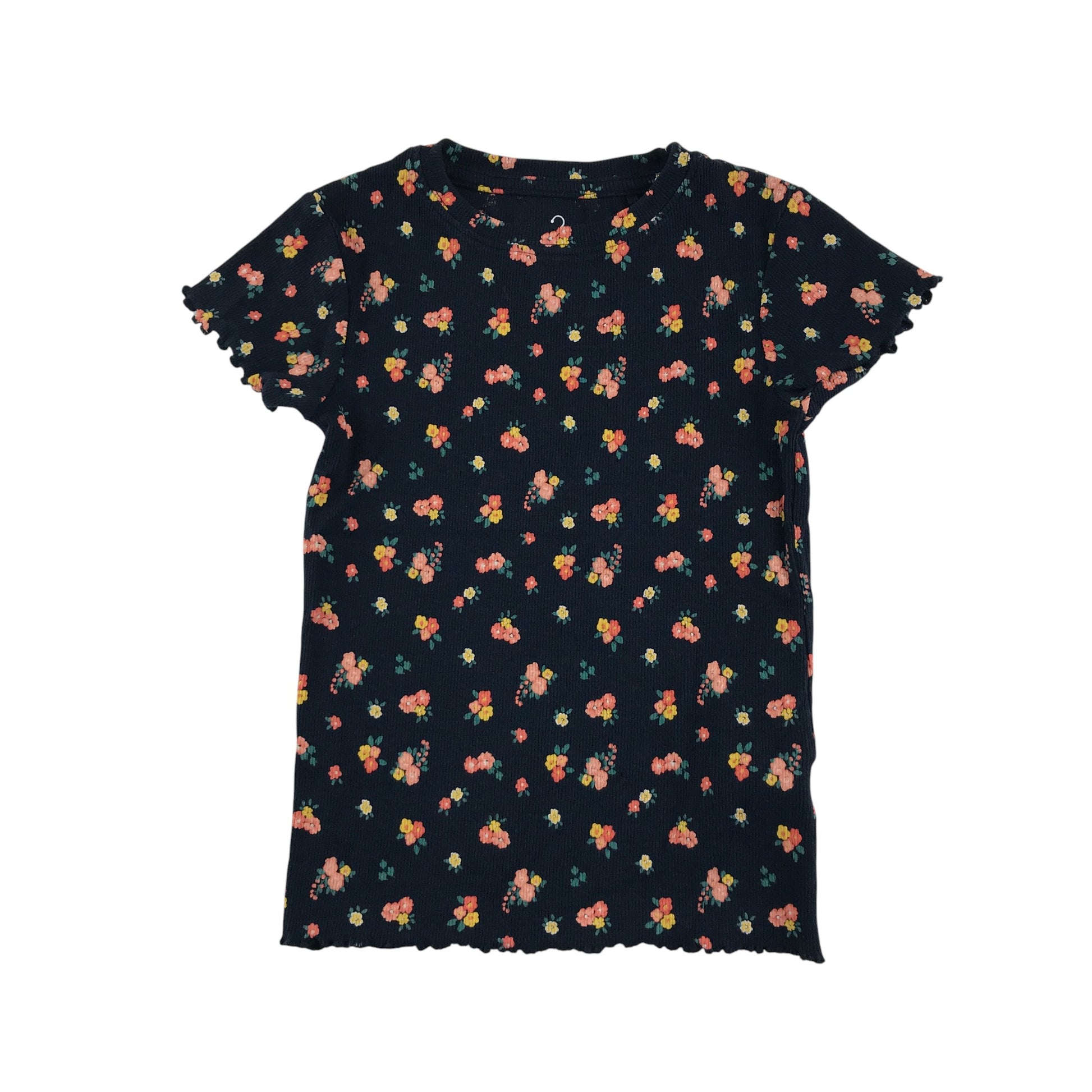 Preloved second hand Next T-Shirt 5-6 Years Navy with Floral Print Ribbed Texture