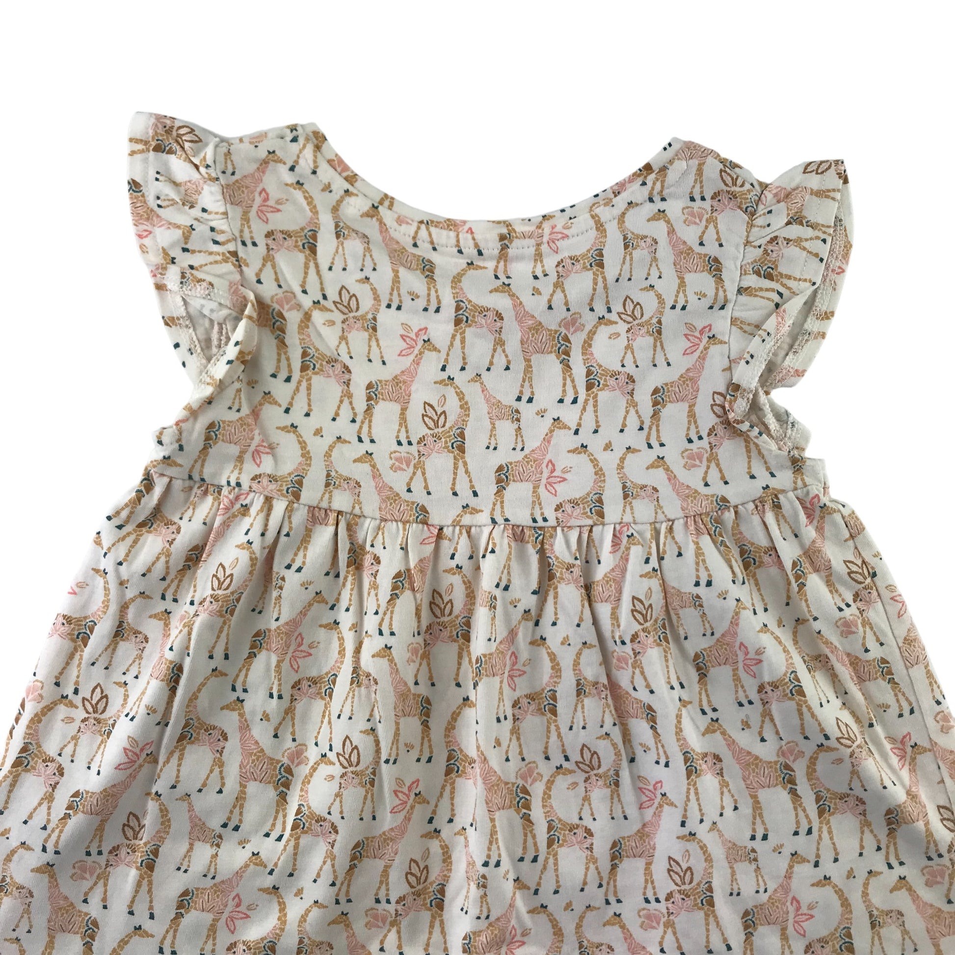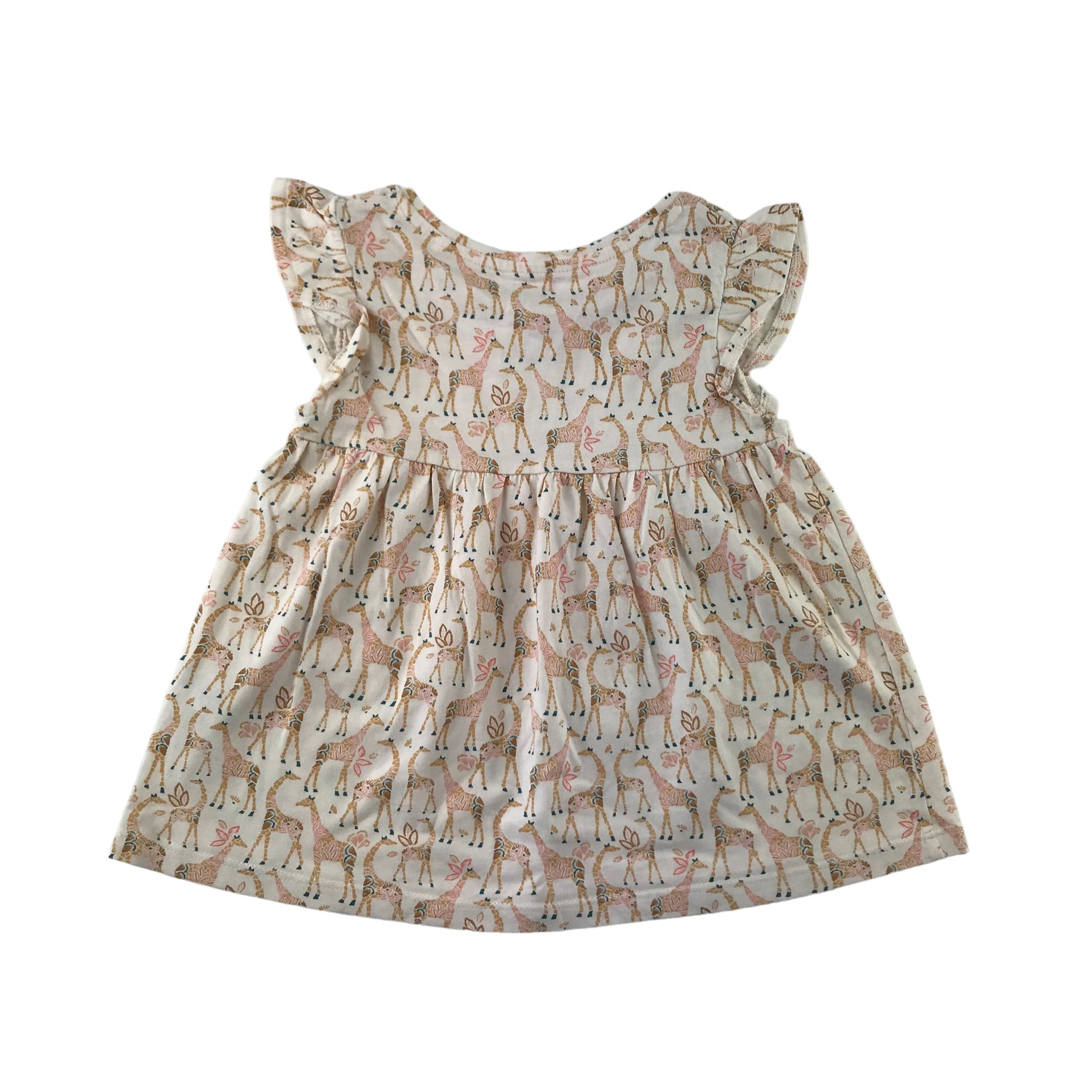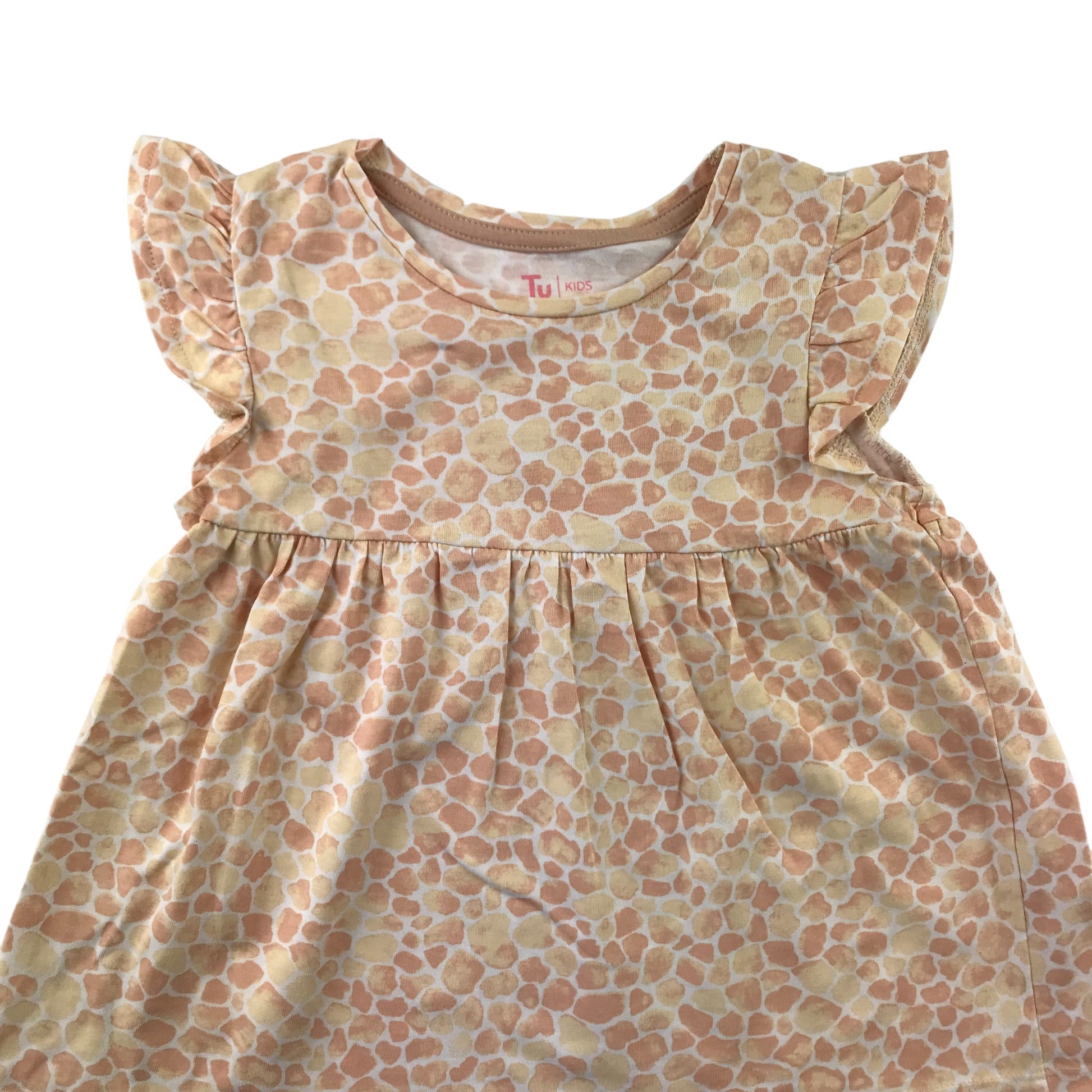 - Description: 3 tops with short butterfly sleeve tops with slightly flared, pleated hems, one graphic spot pattern, one plain and one with giraffe prints