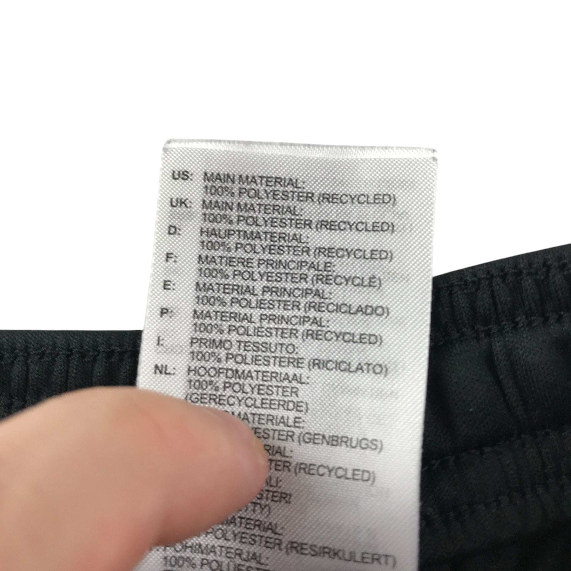 - Clothing features: Black sports shorts elasticated waist and draw strings and logos