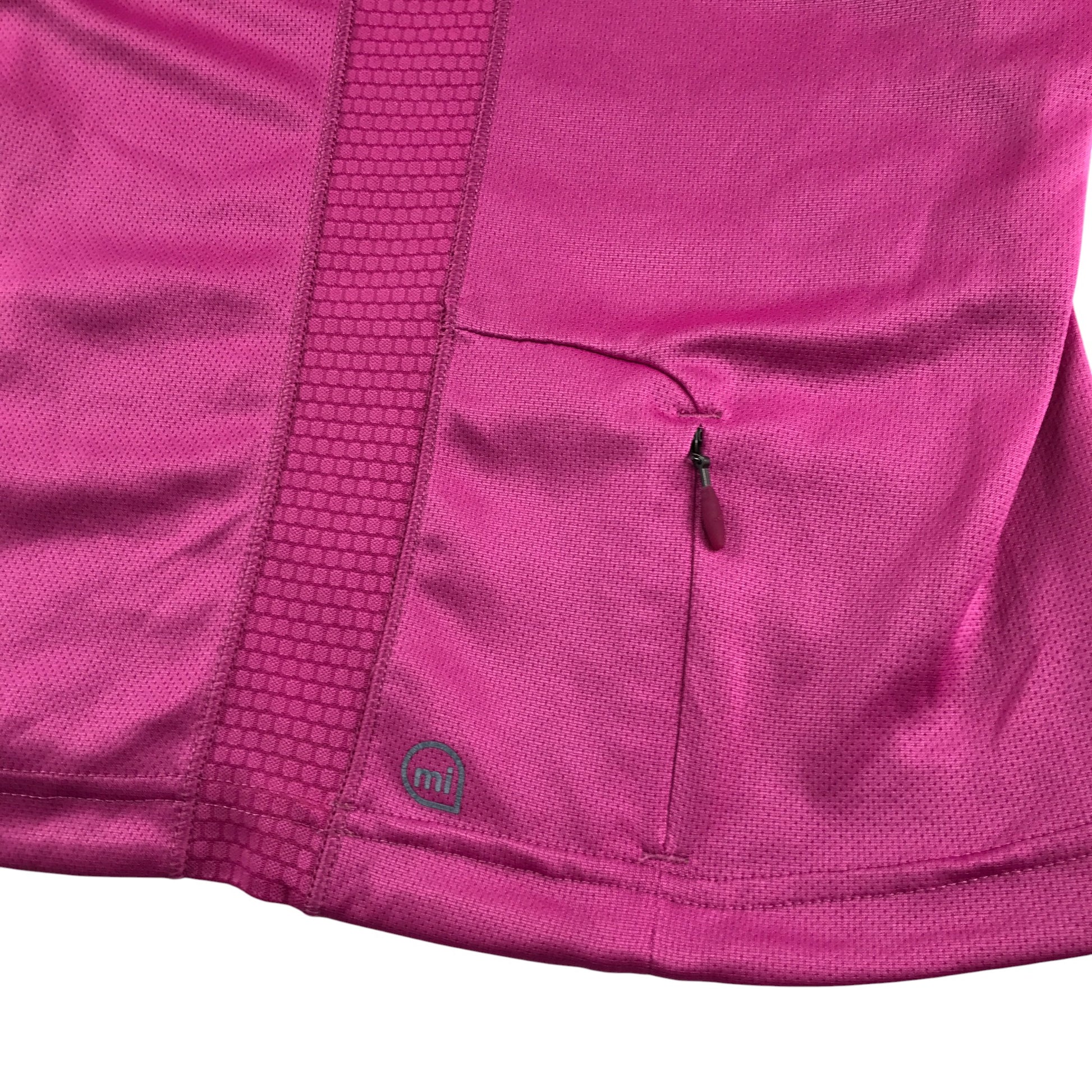 - Clothing features: sporty top with short sleeve, round neckline line back zipper pocket