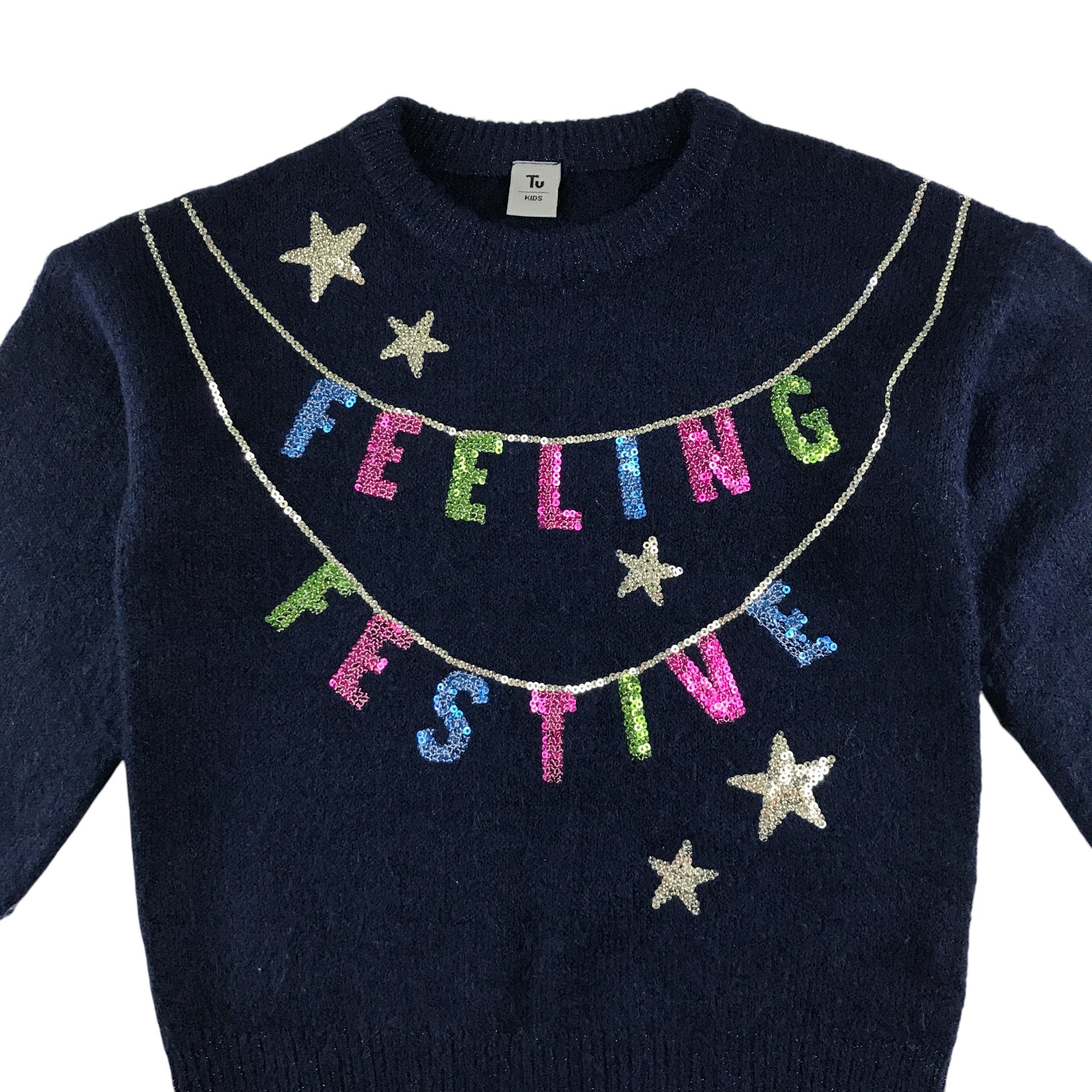 Preloved second hand Tu Jumper 4 years navy sequin festive jumper