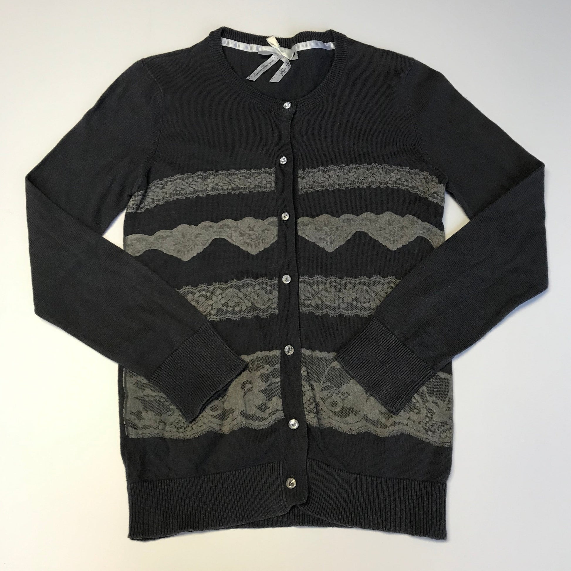 Preloved second hand Young Dimensions Charcoal Grey Lace Detail Cardigan Age 10
