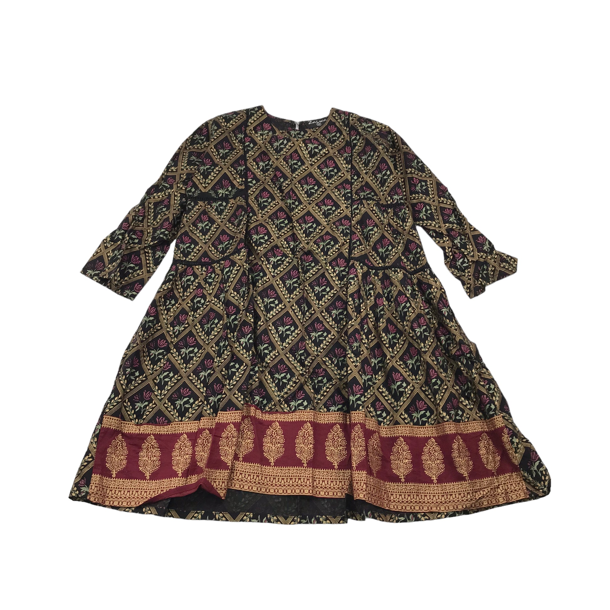 Preloved second hand Zaiwa Black Floral Tunic Dress Age 9-10