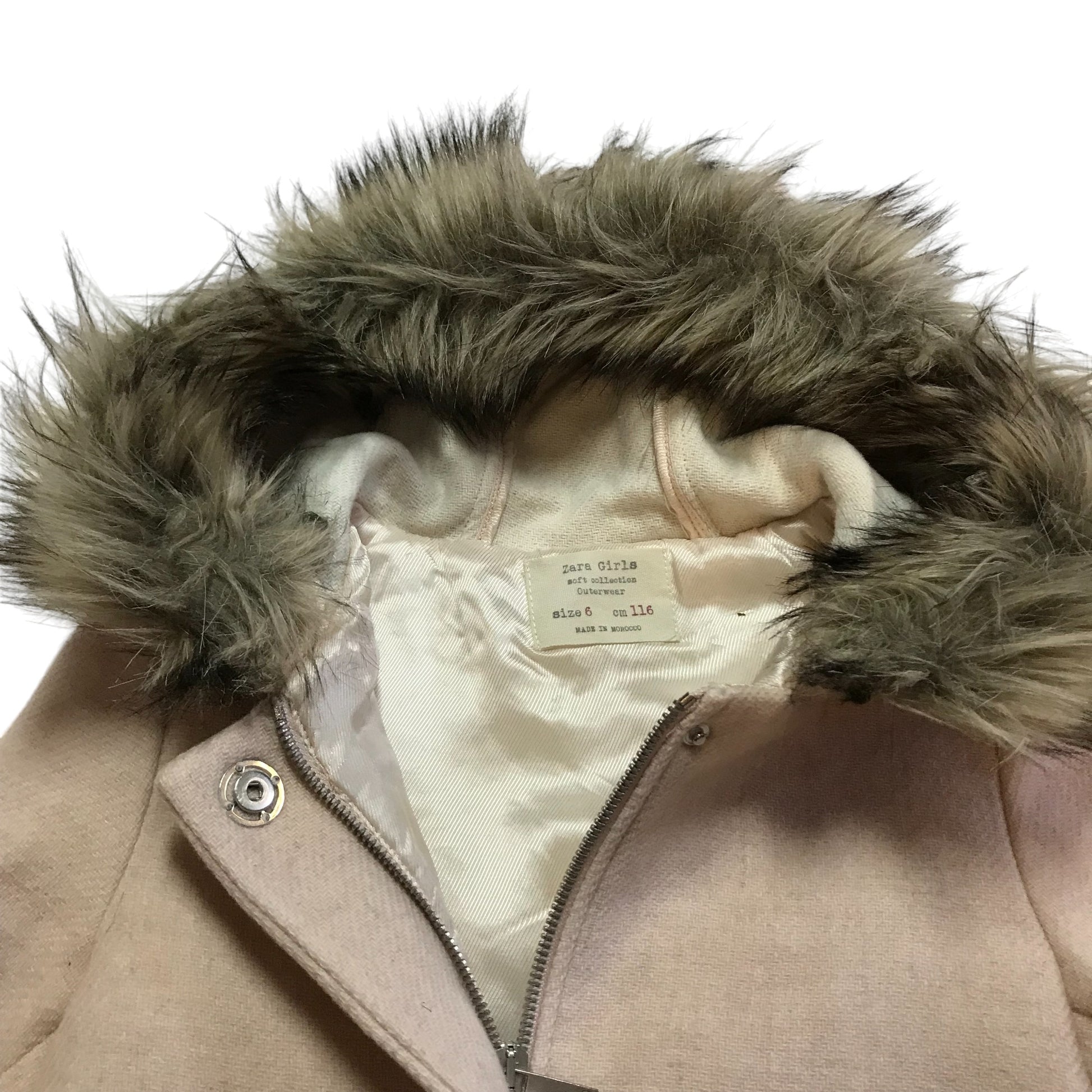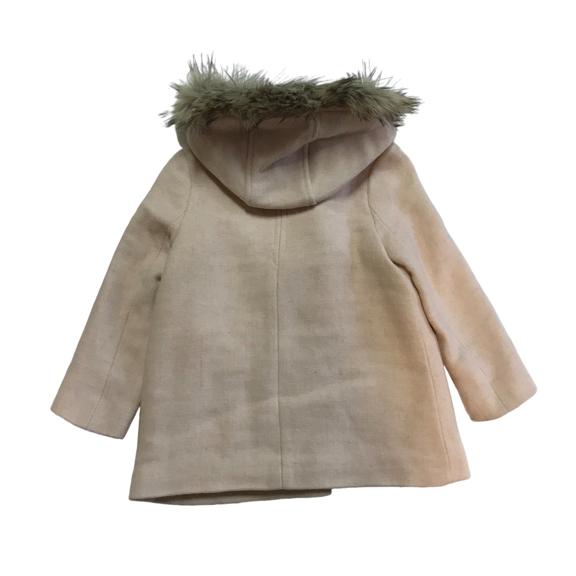 Preloved second hand Zara Coat Age 5-6 Light Pink Wool-mix Faux Fur Hood
