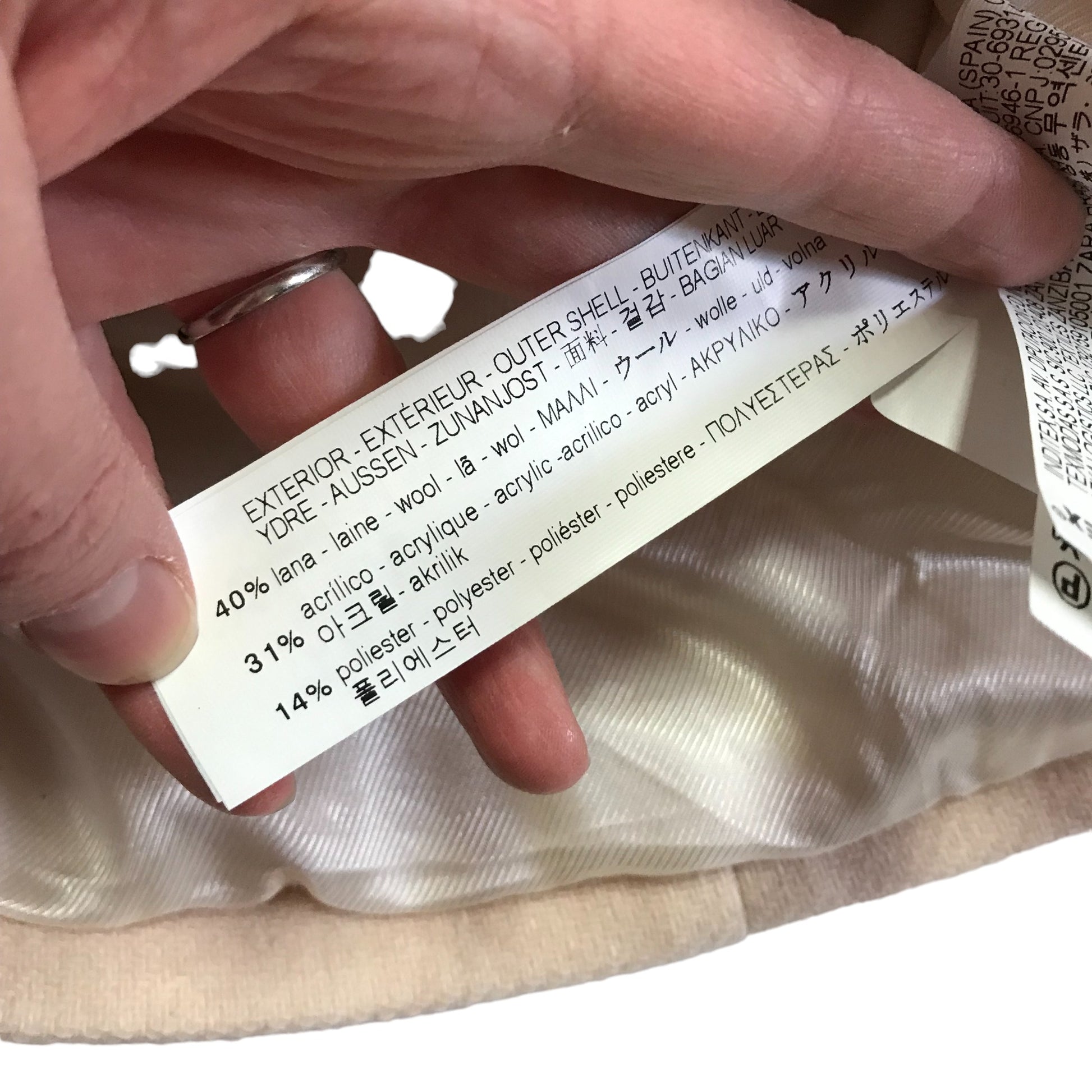 - Materials: 40% wool, 31% acrylic, 14% polyester
